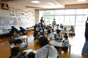 旧石沢小学校で「親子工作教室inおさがりっこ」を開催しました(計画学講座 石山真季 助教)